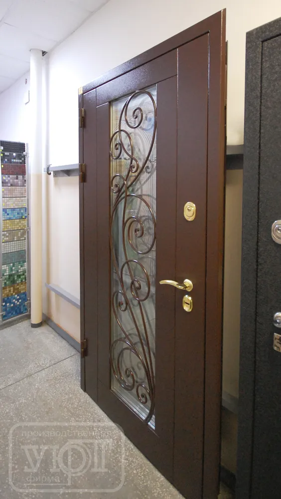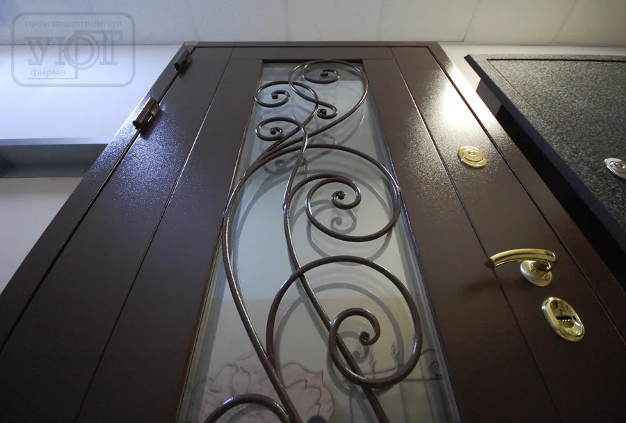 входная дверь со стеклопакетом и кованой решёткой. Терморазрыв. г. челябинск