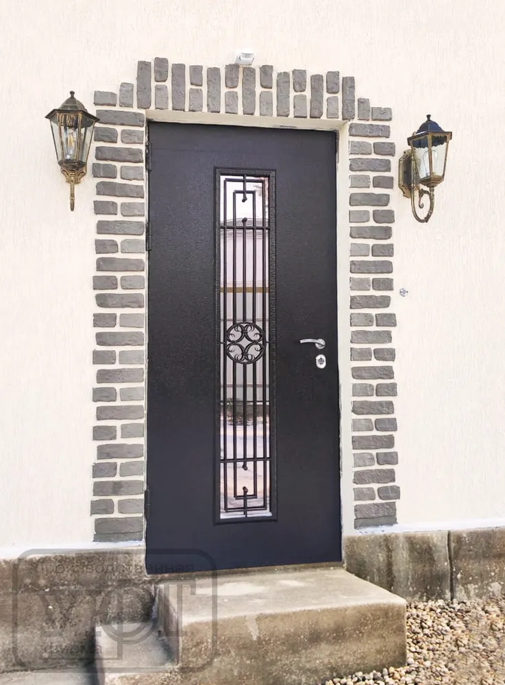 Входная дверь с кованой решёткой со стеклопакетом. СНТ "Мичуринец"