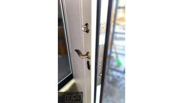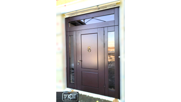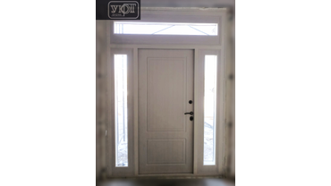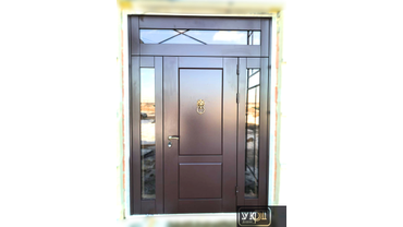 Входная стальная дверь с боковыми и верхней фрамугами со стеклопакетом. пос. красное поле