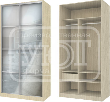 • Наполнение: полки ЛДСП-6шт, яшики выдвижные-2шт, штанга для вешалок-2шт.