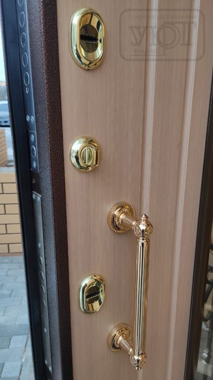 - Внутренняя отделка: Фрезерованная дверная накладка МДФ 16 мм + плёнка ПВХ "Сандал белый".