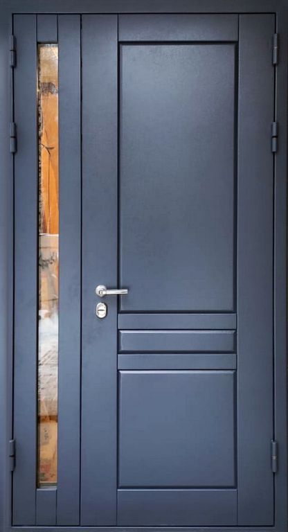 Профильная конструкция, ППП, цвет: RAL 7016 (шагрень). Узкая створка + стеклопакет с тонировкой: 1800х100 мм. Наличник 70 мм (сталь).