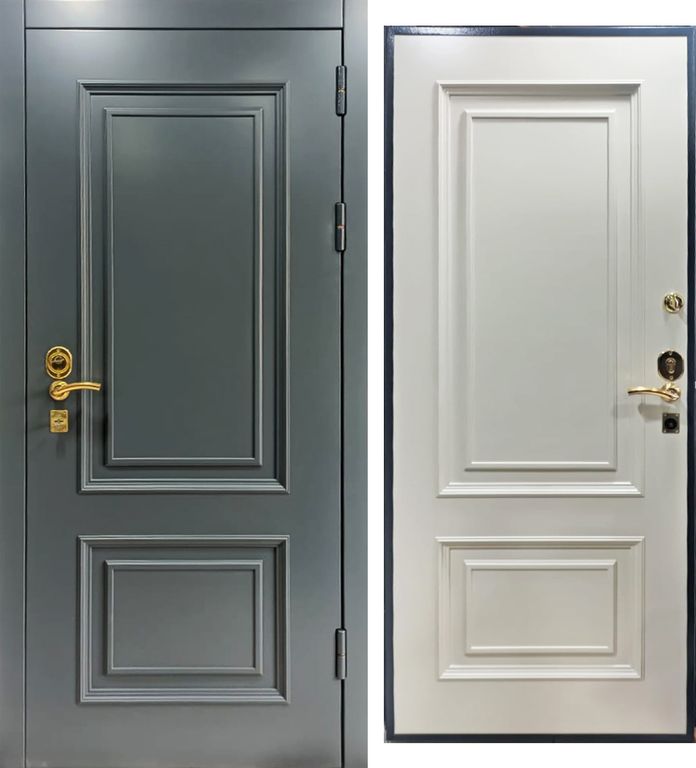 - Наружная отделка: Панель МДФ 16 мм филенчатая с багетом (водная эмаль, цвет на выбор) + наличник МДФ 16 мм (водная эмаль);
