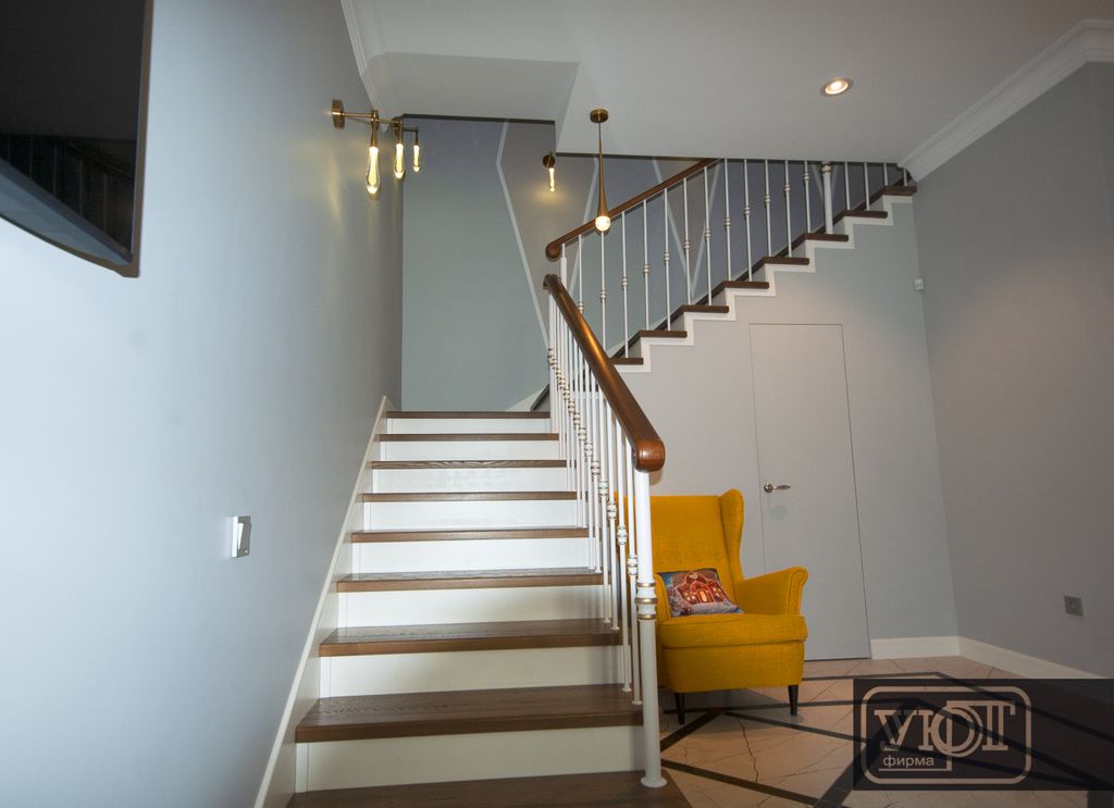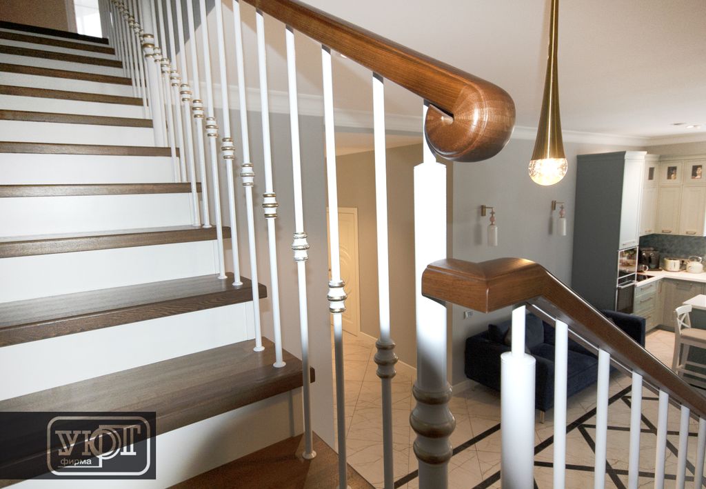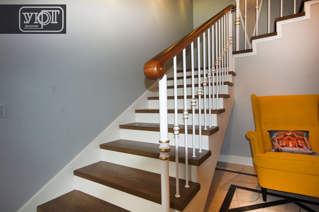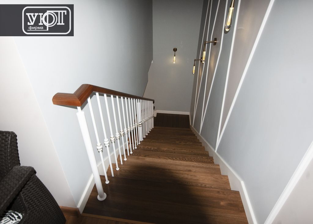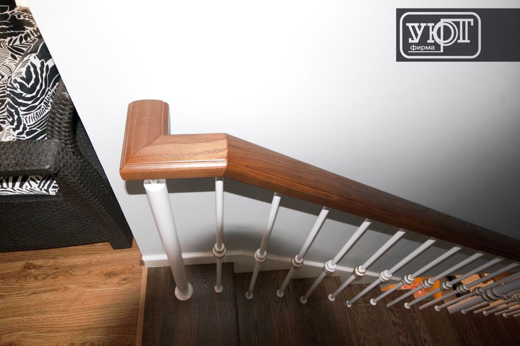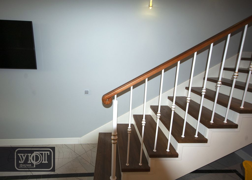 л-5/7. Лестница с металлическим ограждением. Поручень, ступени - массив ясеня