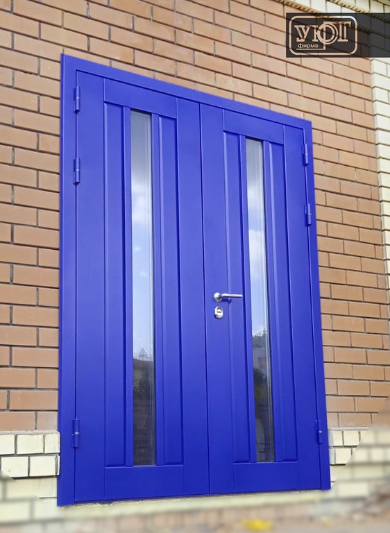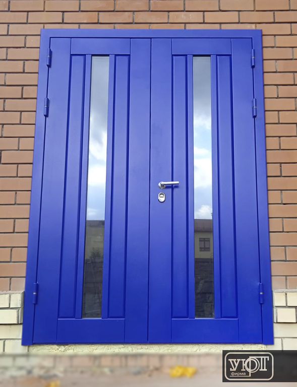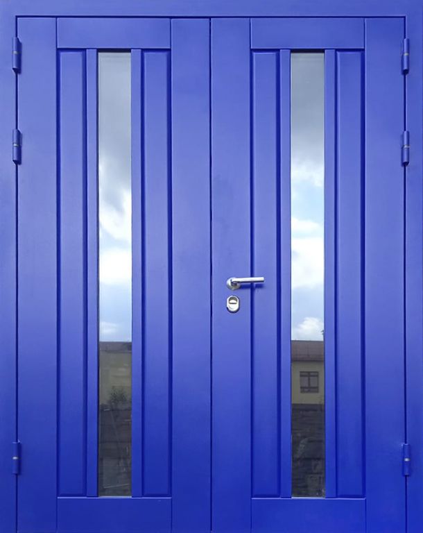- Конструктив: Полотно толщина двери 100 мм, стальной холоднокатаный лист 2 мм (ППП, цвет - RAL 5002, мелкая матовая шагрень).
