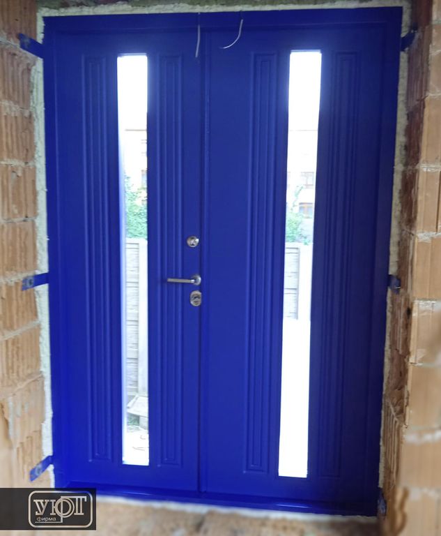 - Внутренняя отделка: Фрезерованная дверная накладка МДФ 16 мм + эмаль, цвет - RAL 5002.
